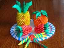 At that place are many varieties origami modules: flat - for mosaics, volumetric - for kusudam and various figures. The mosaic modules are just glued to the base close to each other. Volumetric modules can be glued to each other, stitched together or continued in a constructive way (protruding parts of one module are inserted into the pockets of another). Consider how 3 types of volumetric modules are performed, from which all the products presented in the volume will be assembled.
